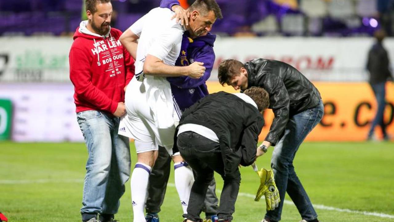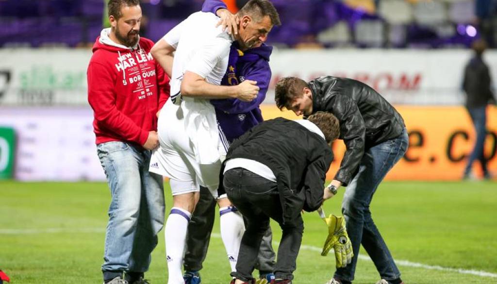Z remijem so vijolični nogometaši vrnili naslov prvaka v Maribor, takoj po sodniškem žvižgu pa so na zelenico pridirjali navijači.