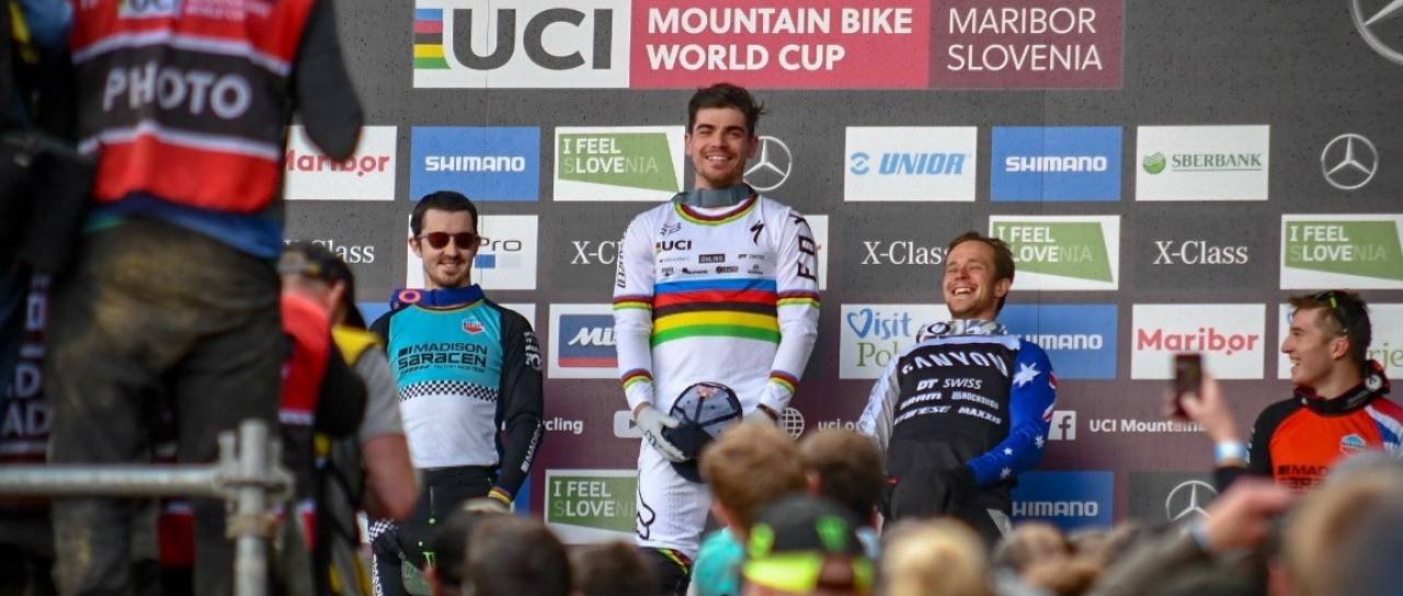 Po končani tekmi svetovnega kolesarstva v gorskem kolesarstvu sta slavila Tahnee Seagrave in Loic Bruni.