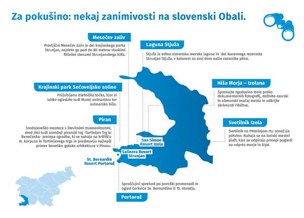 Priporočamo vam tudi Piranske krožne poti, ki jih sestavljajo tri urejene smeri, ki jih lahko združite v eno. Slikovite in urejene poti vam omogočajo raziskovanje Portoroža, Pirana, Seče s Sečoveljskimi solinami in Strunjana ter Krajinskega parka Strunjan, kjer lahko občudujete Strunjanske soline, zaledja z vinogradi in oljčniki.