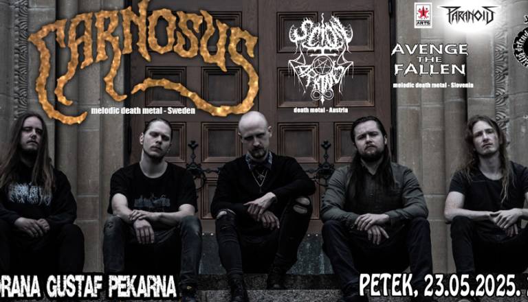CARNOSUS (technical dweath metal - Sweden) SCION OF DARKNESS (death metal - Austria) AVENGE THE FALLEN (melodic death - Slovenia) Links: Carnosus Facebook: http ...