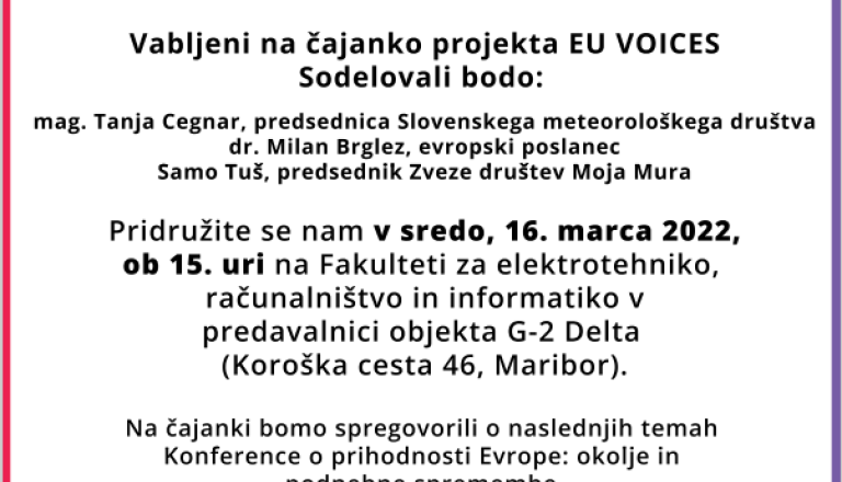 Televizija As vas vabi na dogodek v okvriu projekta EU VOICES. Ta bo v sredo, 16. marca ob 15.00 na Fakulteti za elektrotehniko, računalništvo in informatiko v ...