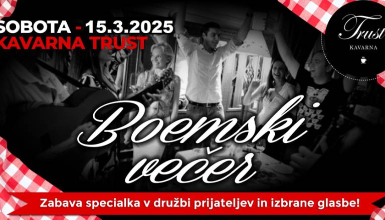 Pridružite se nam na BOŽIČNI decembrski ZABAVI SPECIALKI v kavarni Trust! Ker je za Boemski večer, 14.12., izredno veliko zanimanje, smo se odločili, da vam ...