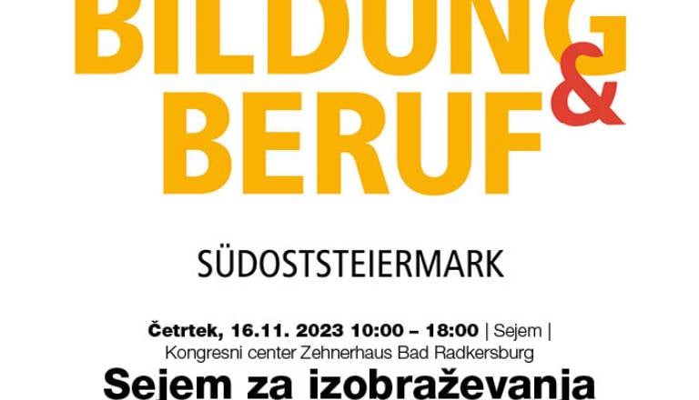 Izobraževanje in kariera Jugovzhodna avstrijska Štajerska Četrtek, 16.11.2023 10:00 - 18:00 Zehnerhaus Bad Radkersburg Sejem za izobraževanje in kariero ...