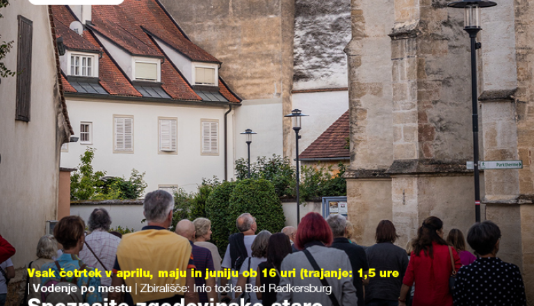 Spoznajte zgodovinsko staro mesto Bad Radkersburg na vodenem ogledu mesta Maj in junij Vsak četrtek od 16:00 (Trajanje: 1,5 ure) Naši vodniki po starem mestnem ...