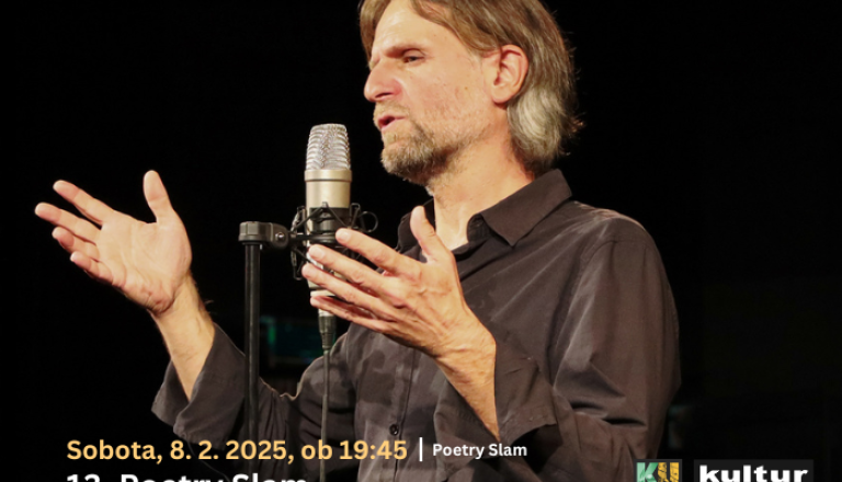 13. Poetry Slam Sobota, 08.02.2025, ob 19:45 Zehnerhaus avstrijska Radgona Poetry Slam je sodobno pesniško tekmovanje, kjer avtorji tekmujejo za naklonjenost ...