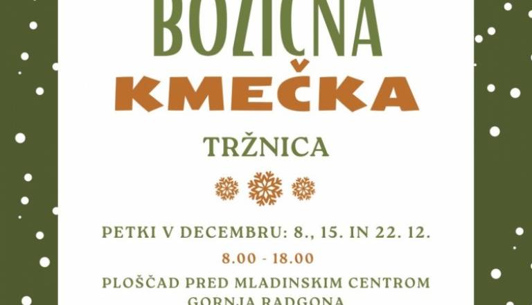 Novost v letošnjem letu: Kmečko tržnico smo podaljšali do 18. ure in združili z Božičnim bazarjem. Tako bodo petki 2023 (8., 15. in 22. 12. 2023) med 8. in 18 ...
