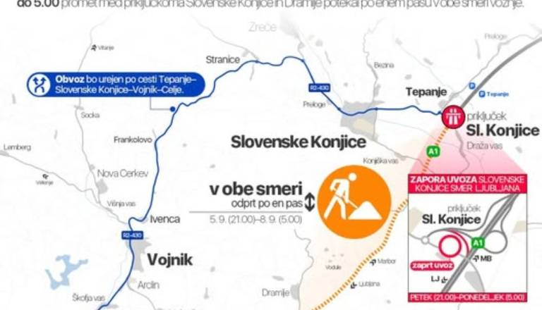 Znova dela na štajerski avtocesti pri Slovenskih Konjicah, tukaj bodo zapore in obvozi