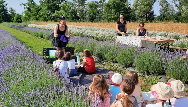 FOTO in VIDEO: Na cvetočem polju sivke spoznali postopek žetve in pridelave sivke