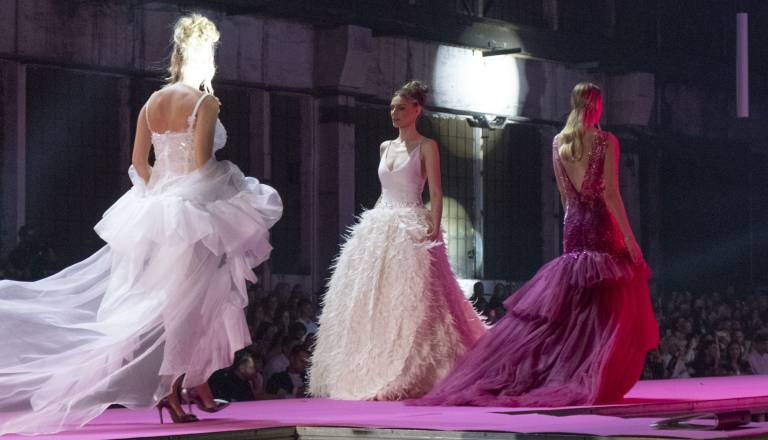 FOTO in VIDEO: Bleščeči modni spektakel v industrijskem okolju, na pink preprogi številni znani obrazi