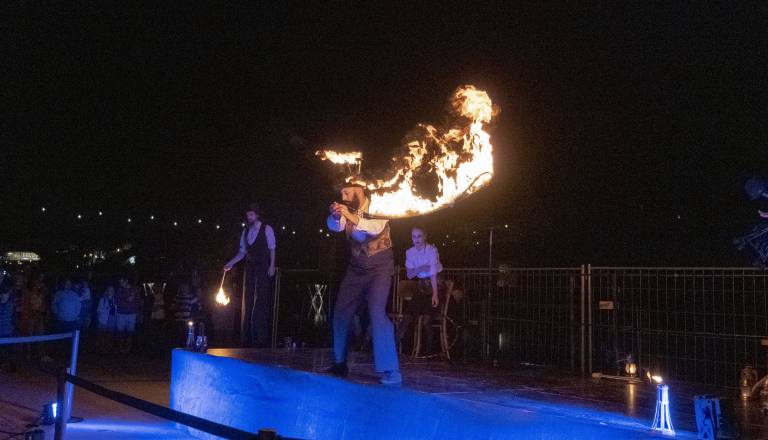 FOTO in VIDEO: Duhovi preteklosti z ognjenim spektaklom posvetili prenovljeni del Lenta