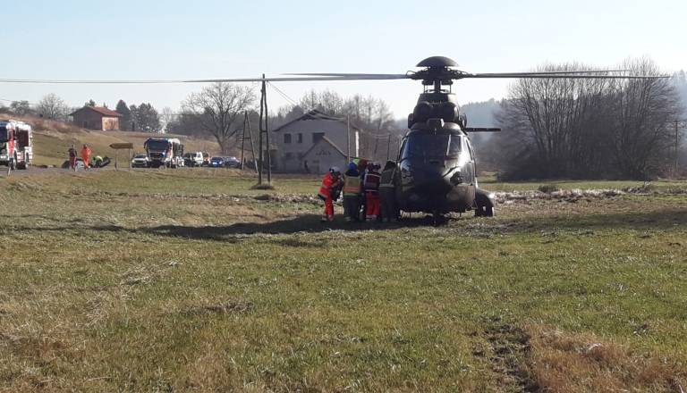 FOTO: Hudo trčenje dveh vozil, ponesrečenca s helikopterjem prepeljali v bolnišnico