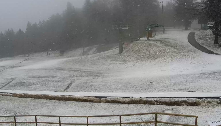 FOTO: Sneg sredi maja? Snežna odeja pokrila Krvavec in Veliko planino
