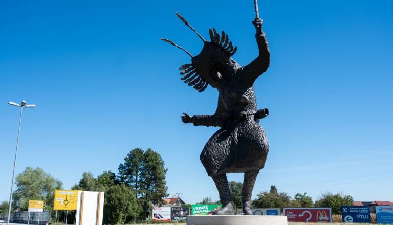 FOTO: Perutnina Ptuj mestu podarila skulpturo kurenta