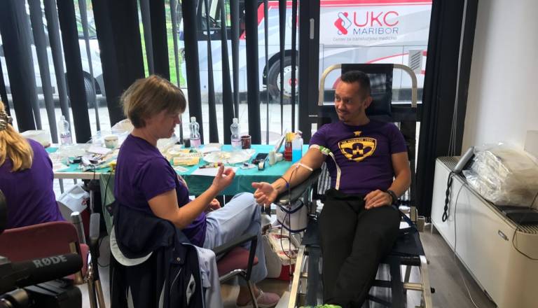Rekordna udeležba: Vijolčno kri darovalo skoraj 200 ljudi, med njimi tudi Darko Milanič