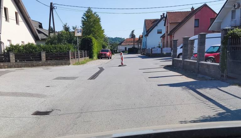 Samo na Teznu: Na ogromno luknjo na cesti opozorili z znakom za spolzka tla