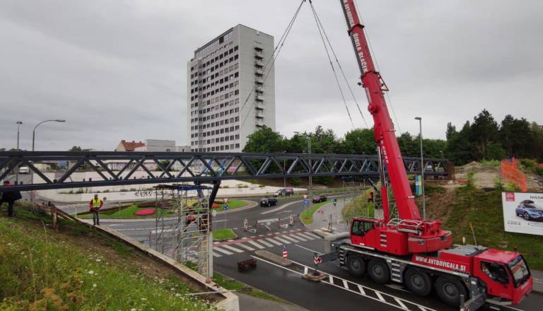 Nad Titovo cesto postavili 22 ton težko jekleno konstrukcijo nadhoda