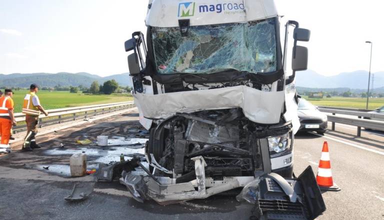 Po nesreči med tovornjakoma ostaja sedem kilometrov dolg zastoj