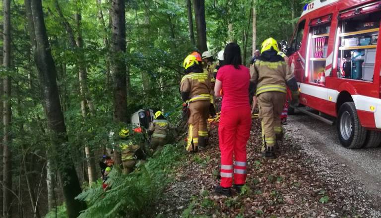 FOTO: Vozilo na streho, dve poškodovani osebi pa v UKC Maribor