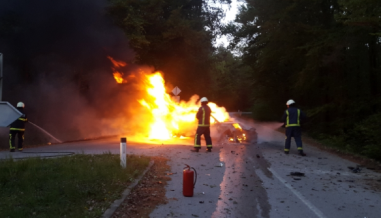 FOTO: Umrli 18- in 19-letnica, iz gorečega vozila ju niso mogli rešiti