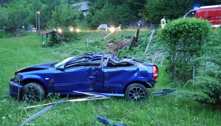 FOTO: Tu je vozilo končalo na strehi in zagorelo, dve mlajši osebi umrli