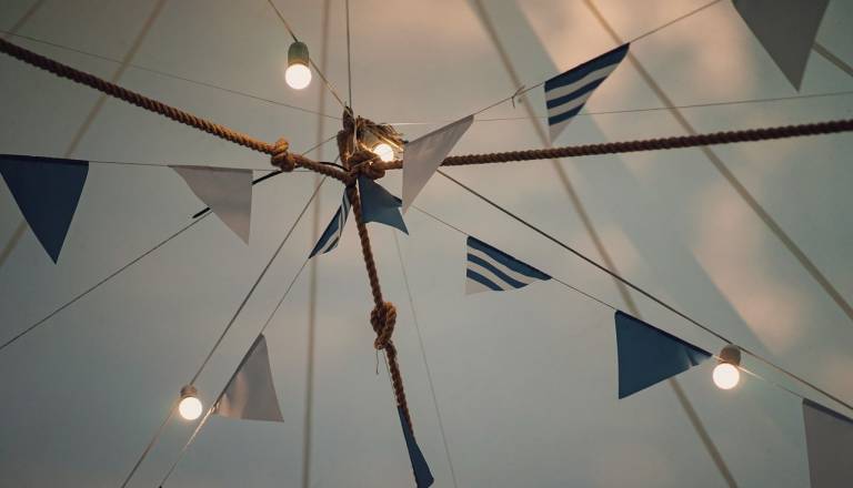 Močan veter odnesel prireditveni šotor, ta pristal daljnovodu in drevesih