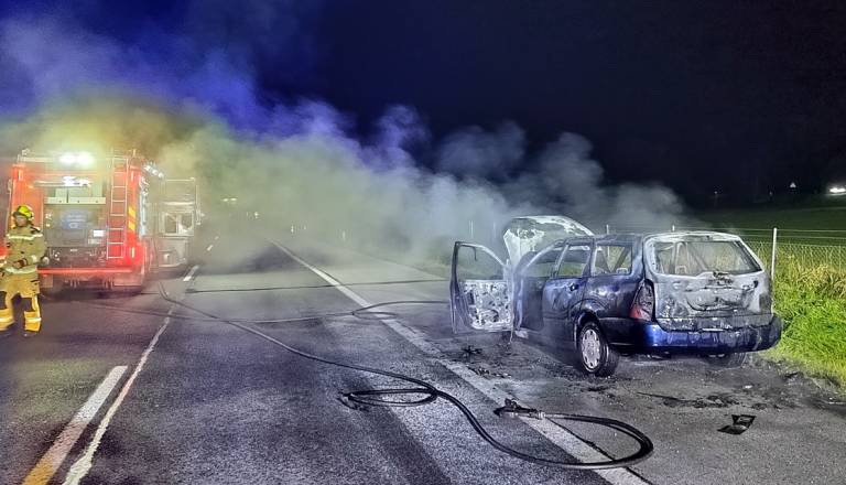 Intervencija na avtocesti, goreče osebno vozilo ustavilo promet pred Slivnico