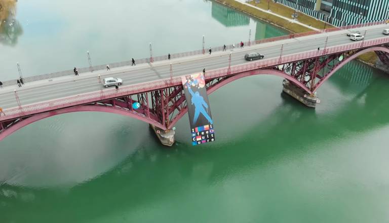 FOTO: Pristojni pojasnili, zakaj so v Mariboru odstranili plakat z napisom »Genocid je zločin«