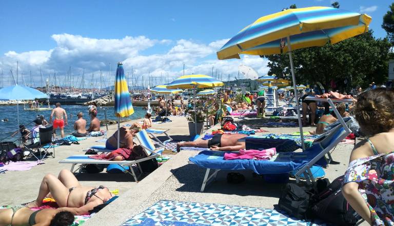 Gneča na slovenski obali: Ljudje ležijo kot sardine v konzervi