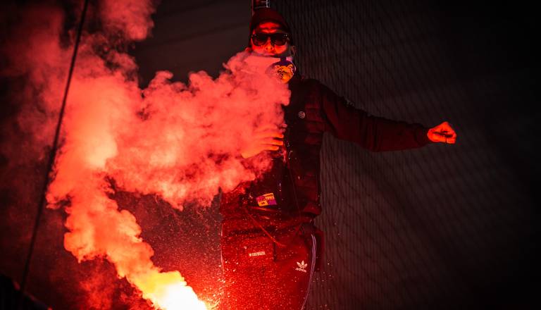 Tri policiste napadlo več deset navijačev: Izvlekel pištolo, jo usmeril v zrak in pripravil za morebitno uporabo