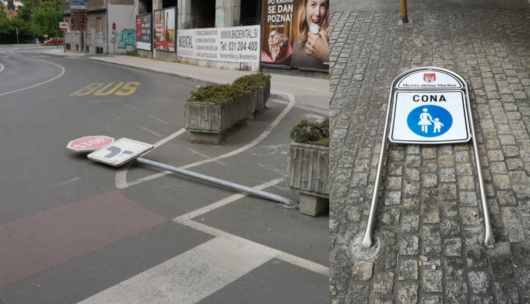 FOTO: Vandali v centru Maribora podrli prometne znake