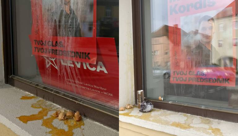 Neznanci so se znesli nad pisarno Levice v Mariboru, pljuvali po oknu in vanj metali jajca