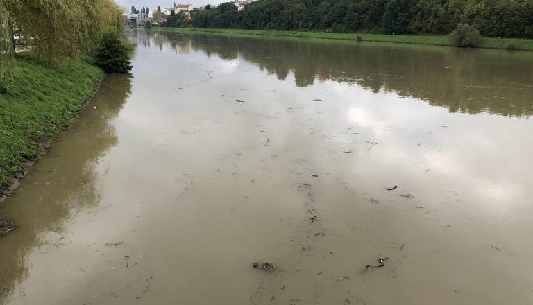 Mimoidoči opazili več oljnih madežev na gladini reke Drave