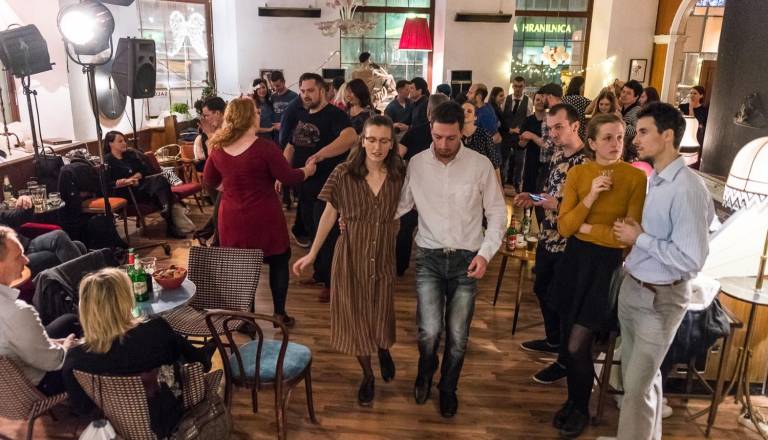 FOTO in VIDEO: The SwingTones in njihove Lepe pesmi dvignile na noge plesalce v nekdanji Veliki kavarni