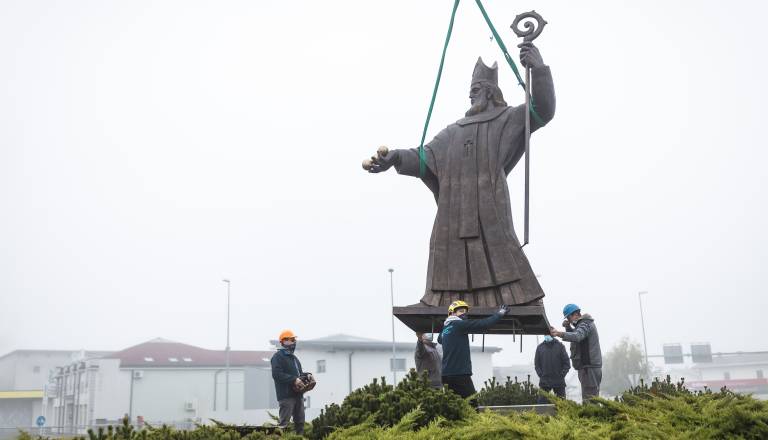 FOTO in VIDEO: V krožišču postavili štiri metre visok kip svetega Nikolaja