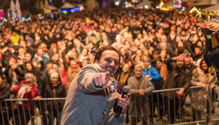 FOTO in VIDEO: Mož s črno kitaro privabil Čarobni december in množice na Trg Leona Štuklja