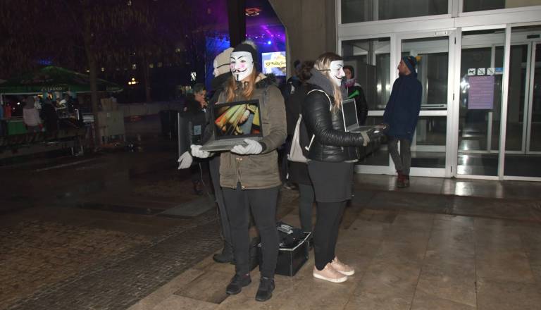 FOTO: Na žrebu številk za slalom miroljuben protest veganov